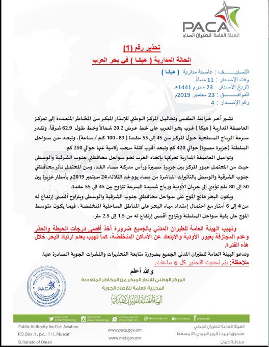 جو24 هيكا تجتاح بحر العرب والسلطات العمانية تحذر
