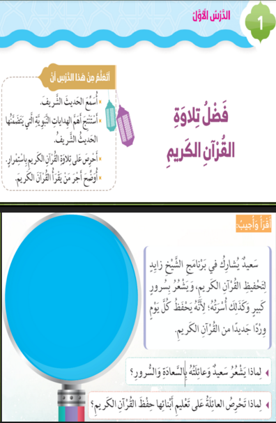 فضل تلاوة القرأن الكريم الصف الثاني تربية اسلامية الفصل الثاني المناهج الإماراتية